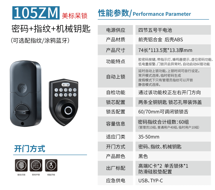 - 适用门厚: 35~65mm