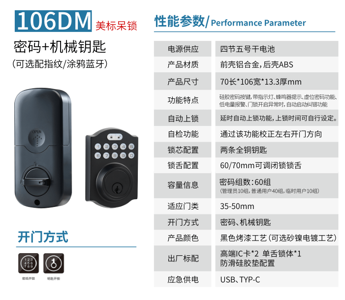 - 适用门厚: 35~65mm