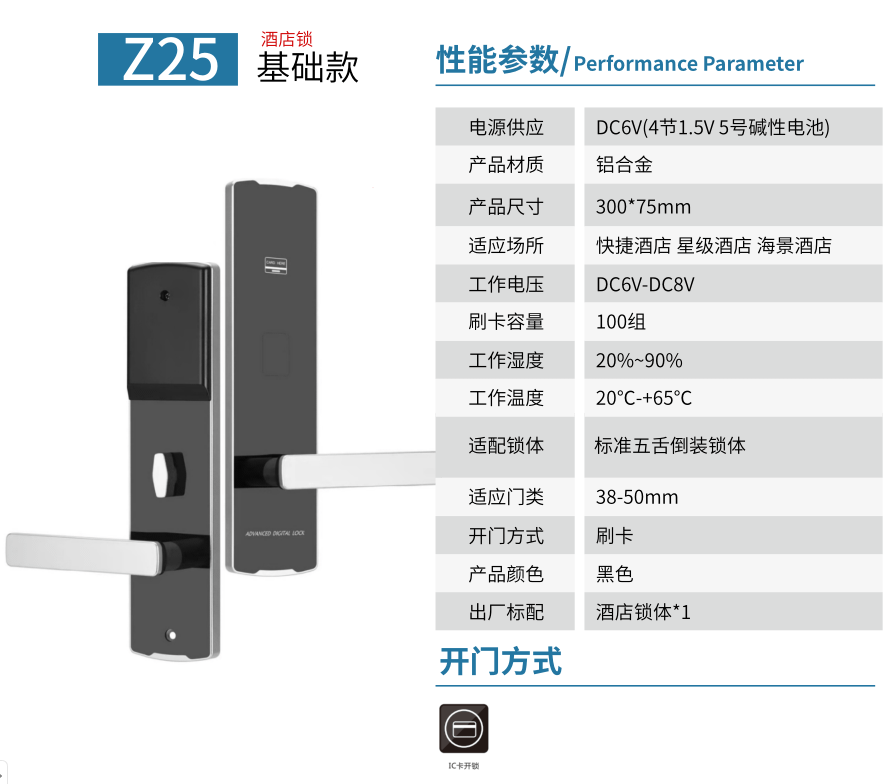 - 开锁方式:刷卡、机械钥匙、TTHOTEL APP、TTLOCK APP