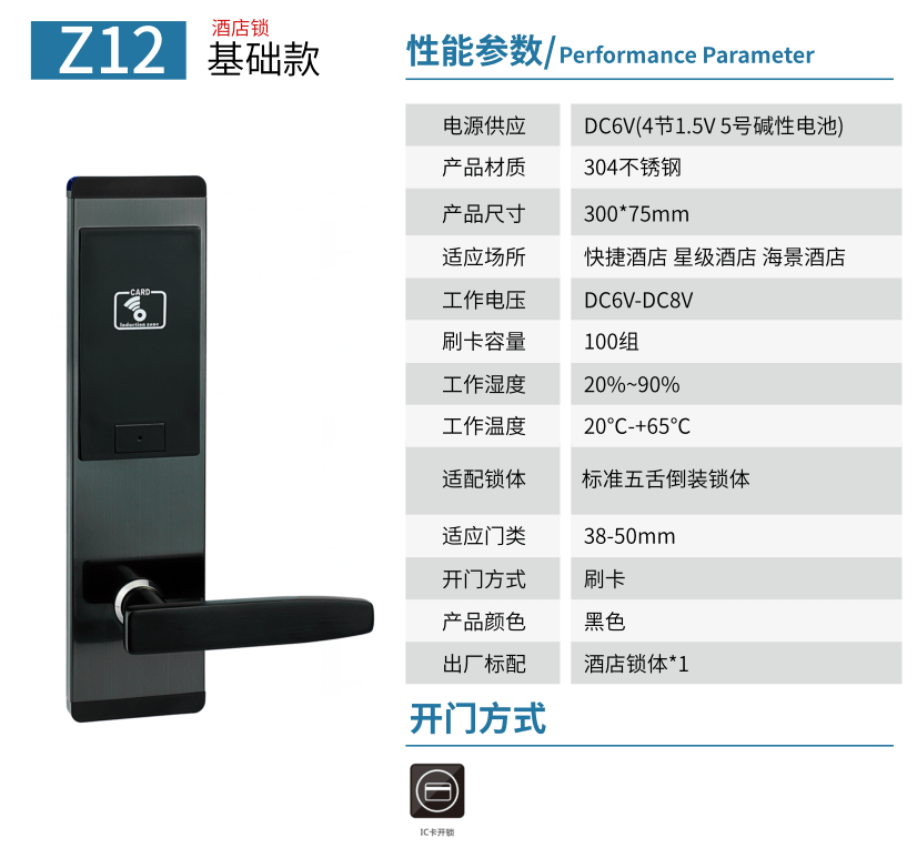 - 开锁方式:刷卡、机械钥匙、TTHOTEL APP、TTLOCK APP